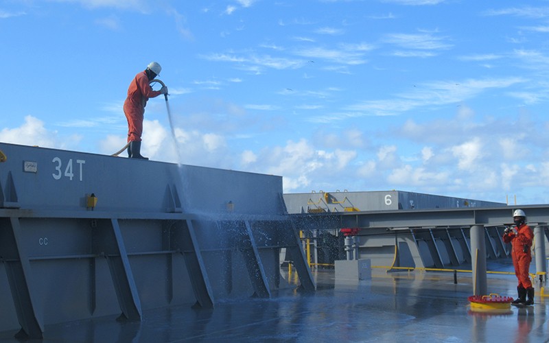 Espadarte conducts hose tests to verify hatch cover integrity, ensuring vessels comply with P&I standards and preventing water ingress issues during transit.